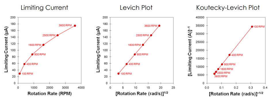 این بدان معناست که جریان مشاهده شده در هر پتانسیل معین در امتداد ولتاموگرام به صورت خطی با جذر سرعت چرخش تغییر می کند (نگاه کنید به: شکل 1، سمت راست).